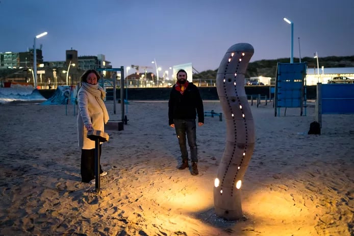 Een sculptuur op het sportstrand van Scheveningen die oplicht als je er langs loopt, moet sporters in beweging brengen en hen een veilig gevoel geven in het donker.