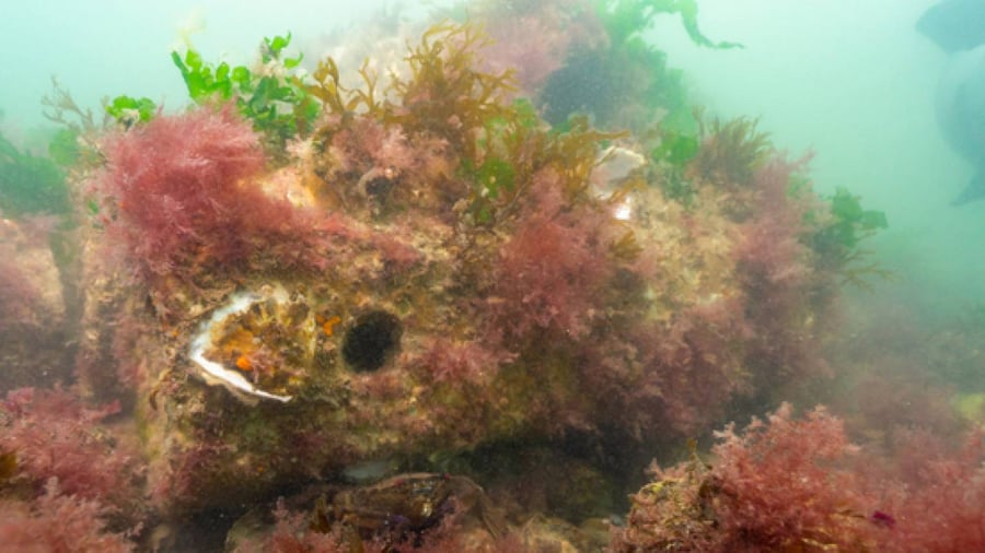 De kunstmatige riffen bestaan uit betonnen elementen waar onder meer vissen, krabben en kreeften in kunnen schuilen, en waar mosselen en oesters zich aan kunnen hechten.