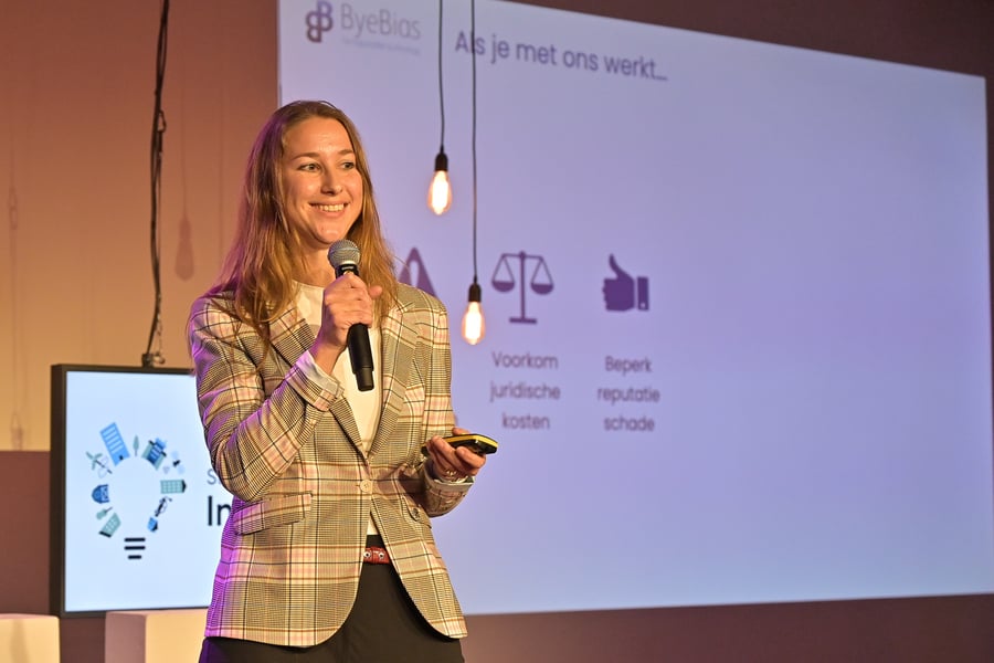 "Wij zijn Hilje de Boer en Sven van Munster, we hebben eigenlijk twee aparte bedrijfjes die samen gepitcht hebben voor de challenge “Voorkom discriminatie met algoritmes” van het Ministerie van BZK. Er werd gezocht naar creatieve oplossingen die bijdragen aan het identificeren, voorkomen en bestrijden van ongewenste vormen van discriminatie in data-gedreven of (zelf) lerende toepassingen in de publieke sector. Een actueel onderwerp waar dagelijks de kranten vol mee staan."