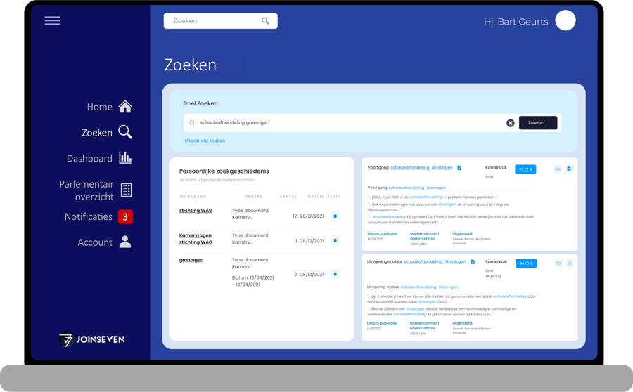 Al jaren verwonderen wij ons over hoeveel potentie er schuilt in het ontsluiten van open beleidsdata. In 2020 besloten wij onze verwondering om te zetten in actie door JoinSeven op te richten en speciaal hiervoor ons dataplatform Heptagon te ontwikkelen. Toen in februari 2021 de openbare innovatiechallenge ‘Kamervragen’ gepubliceerd werd, wisten wij het direct: Deze challenge is ons op het lijf geschreven.